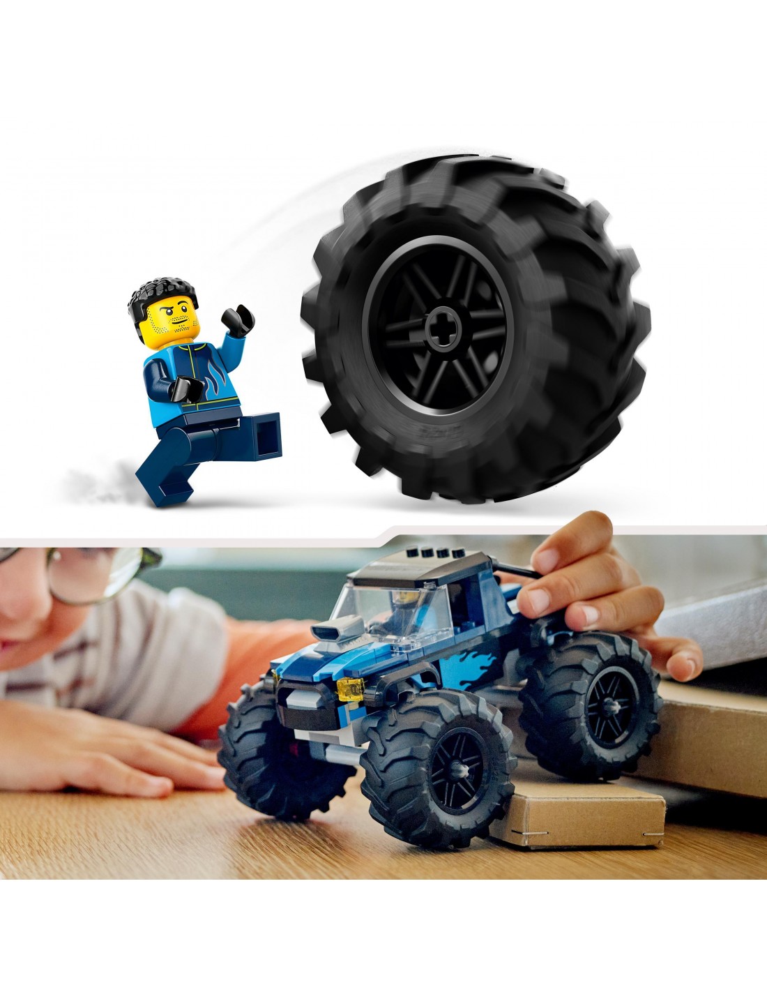 Poczuj prawdziwe emocje podczas jazdy niebieskim monster truckiem LEGO®! Ten potężny pojazd jest stworzony do pokonywania trudnego terenu i szybkich akcji dzięki gumowym oponom, które sprawdzą się przy ostrych zakrętach i podniebnych skokach. Wskocz za kierownicę i jedź na najbliższy tor, by popisać się umiejętnościami przed wiwatującym tłumem!