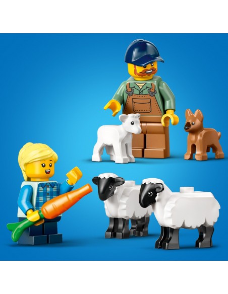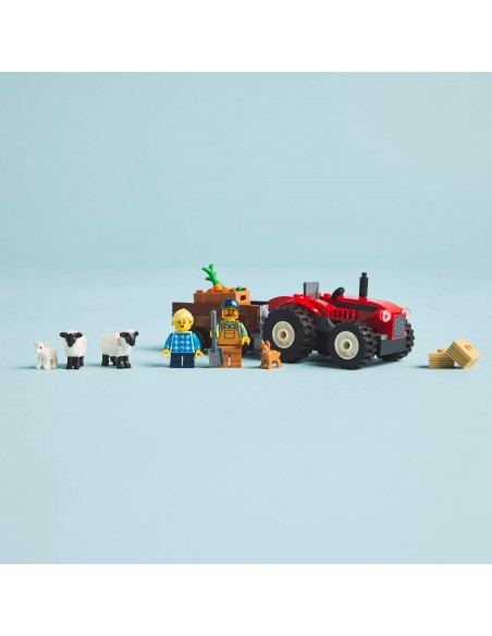 Pokaż czterolatkom i starszym dzieciom prawdziwe uroki wsi, wręczając im zestaw LEGO City Czerwony traktor z przyczepą i owcą. Zawiera on czerwony traktor z odłączaną przyczepą, kosz marchewek i dwie bele siana. Wystarczy dodać minifigurki rolnika i wnuczki, a także dwie figurki owiec, figurkę jagnięcia i szczeniaka, które umożliwiają ciekawe odgrywanie ról i opowiadanie historii.