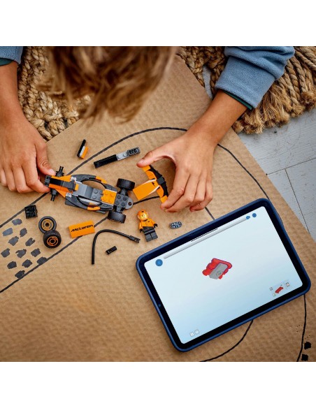 Ten model LEGO F1 zawiera drukowane instrukcje budowania oraz cyfrowe instrukcje w aplikacji LEGO Builder. Dzieci mogą w niej powiększać i obracać modele w 3D, śledzić postępy oraz odkrywać i zapisywać inne zestawy.