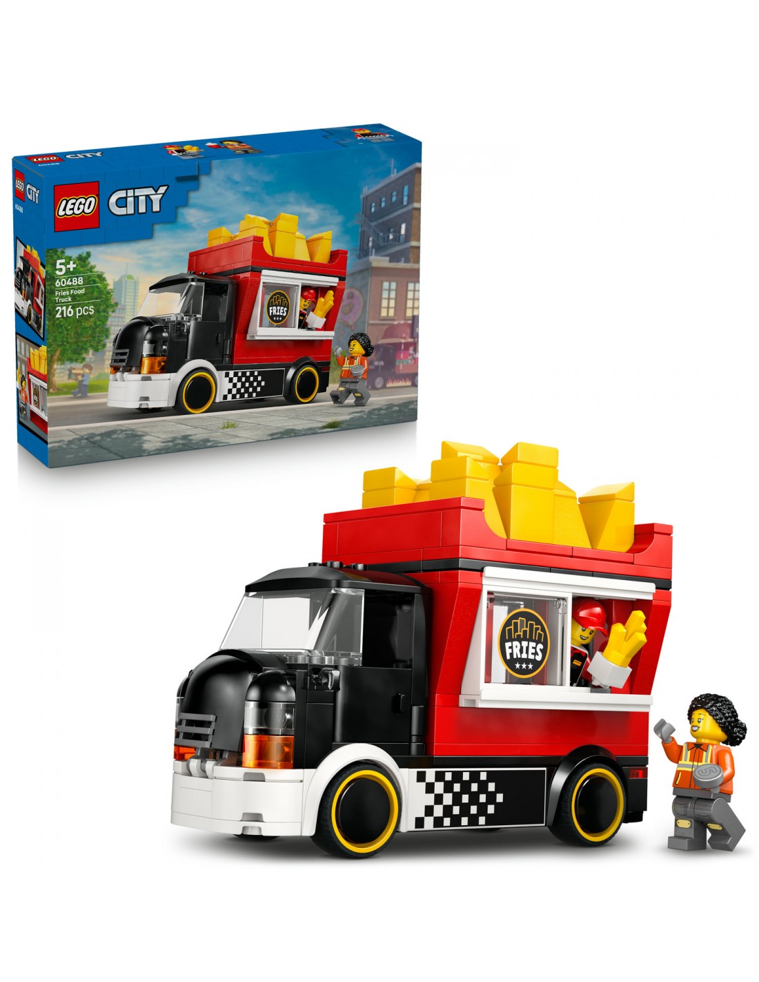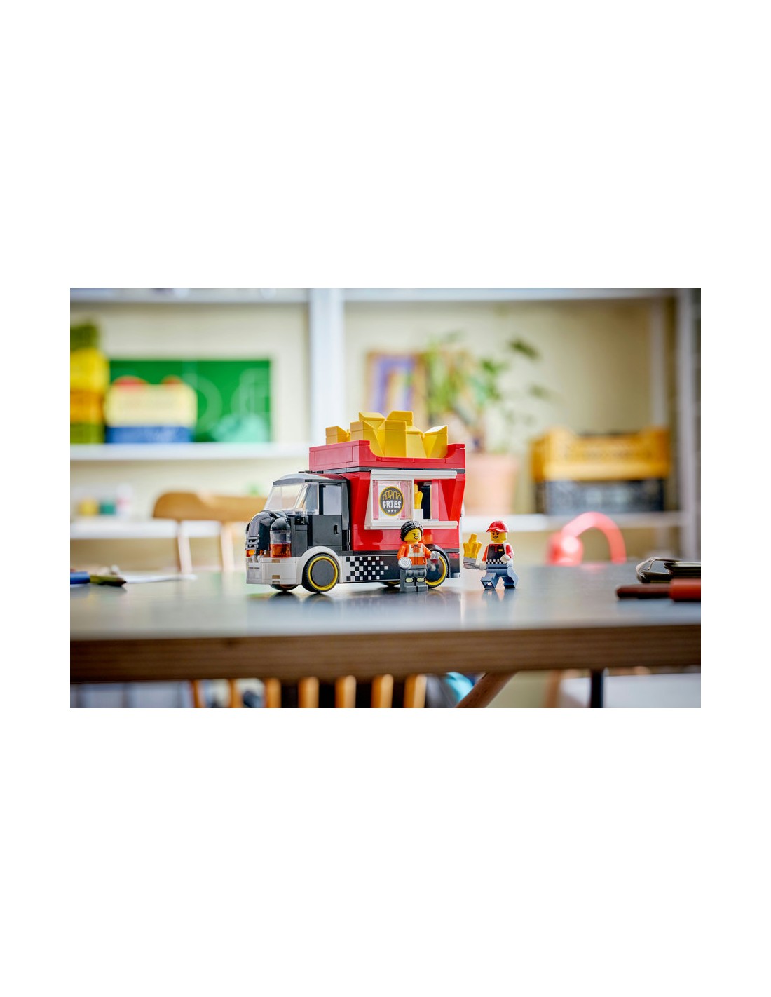 Serwowanie pyszności to dziecinnie prosta sprawa dzięki zestawowi LEGO® City Food truck z frytkami dla dzieci w wieku od pięciu lat. Kolorowy food truck wyposażony jest w odczepiany kiosk w kształcie wielkiej porcji frytek.