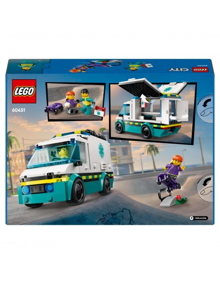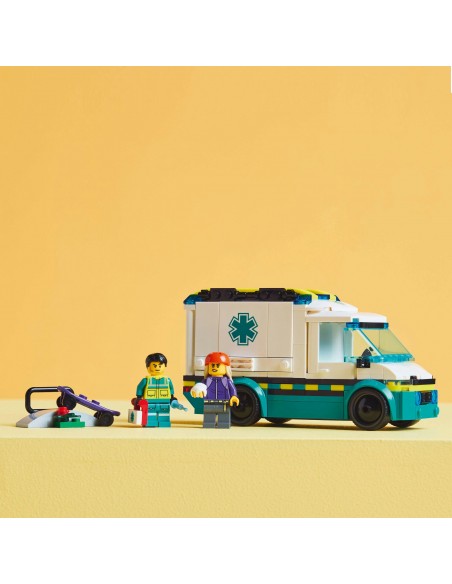• Zestaw zawiera karetkę pogotowia, rampę oraz minifigurki deskorolkarza i ratownika medycznego