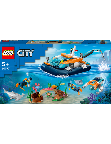 Ten zestaw LEGO® City Łódź do nurkowania badacza (60377) czeka na niekończące się pomysłowe przygody.
