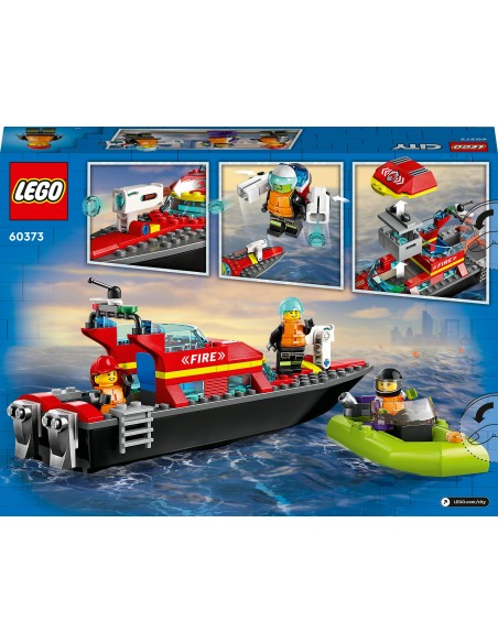 W tym zestawie LEGO® City Łódź strażacka (60373), w którym jest fajna łódź strażacka i motorówka, czekają na dzieci ekscytujące strażackie przygody. Dzieci mogą wyrzucać klocki imitujące wodę z gaśnicy i użyć plecaka odrzutowego, by ugasić płomienie. Wystarczy dodać trzy minifigurki i można zaczynać zabawę.