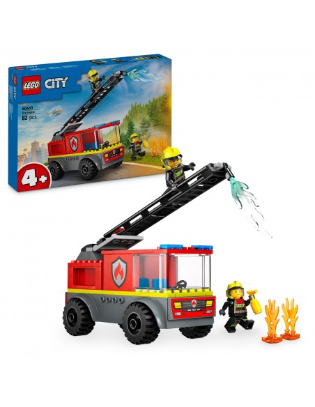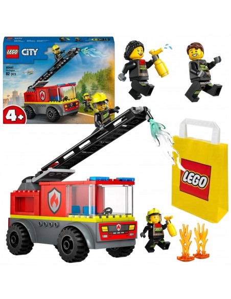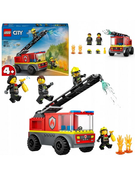 Strażackie zestawy LEGO City to bogate w funkcje zabawki poruszające się w powietrzu, po lądzie i po wodzie, które umożliwiają pomysłową zabawę bez ograniczeń. Dzieci mogą dodać ten wóz strażacki z drabiną do innych zestawów z serii LEGO City (sprzedawanych osobno) i przeżyć jeszcze fajniejsze przygody! Ratunku! Pożar! Czas odpalić potężny wóz strażacki z drabiną i popędzić na miejsce zdarzenia! W LEGO® City czekają na Ciebie pełne akcji przygody!