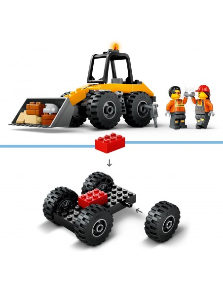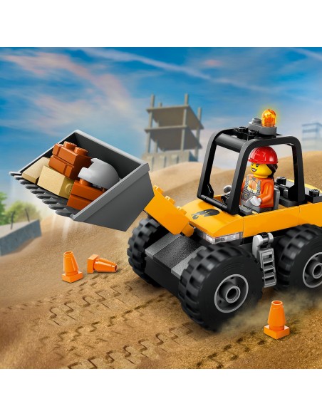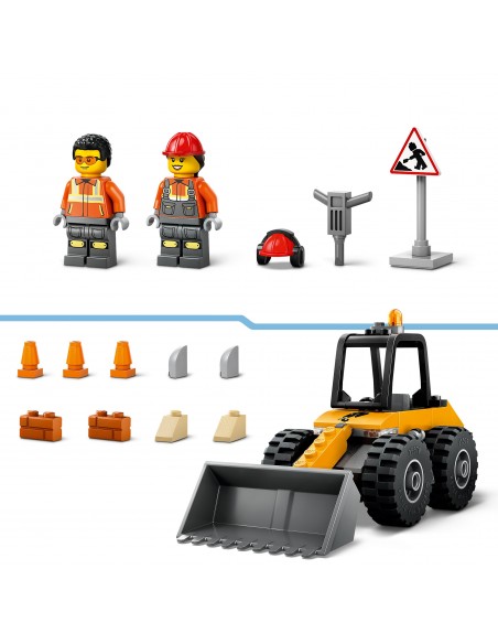 Wprowadź swoje dziecko do ekscytującego świata budowania z zestawem LEGO City Żółta ładowarka kołowa. Ta koparka dla czteroletnich i starszych konstruktorów ma dużą łyżkę i opony do poruszania się po trudnym terenie. Zestaw zawiera również znak drogowy, pachołki i zabawkowy młot pneumatyczny, a także minifigurki kierowcy i pracownika do twórczej zabawy w odgrywanie ról i opowiadania historii.