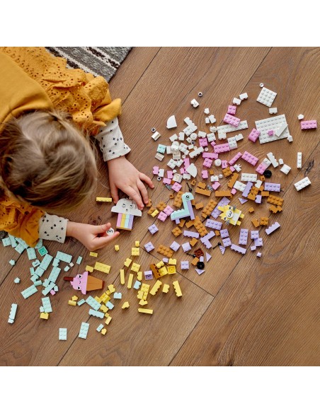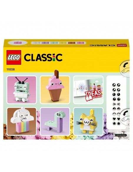 Ten kreatywny zestaw konstrukcyjny zawiera 333 klocki o różnych kształtach, rozmiarach i pastelowych kolorach. 18 klocków ma oczy, dzięki którym dzieci mogąożywić swoje dzieła. W zestawie są czytelne, drukowane instrukcje budowania dla pięciu łatwych do złożenia modeli: chmurki, lodów, dinozaura, kota i robota. Wraz ze wzrostem pewności siebie dzieci mogą odkrywać niekończącą się zabawę w budowanie. Cyfrową wersję instrukcji można również znaleźć w aplikacji LEGO Builder.