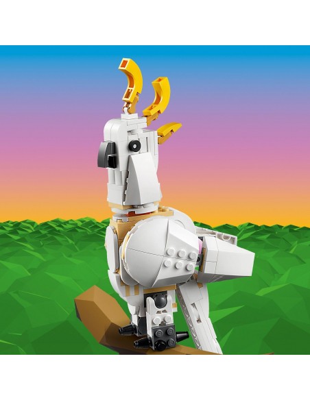 Dzięki zestawowi LEGO® Creator 3 w 1 Biały królik (31133) dzieci w wieku od ośmiu lat mogą odgrywać zabawne historie. Zawiera on króliczka zbudowanego z klocków z ruchomą głową, nogami, pyszczkiem i uszami. Dla zwierzaka przygotowano także dwa przysmaki: marchewkę lub kwiatka. Nieustanna zabawa pobudzająca wyobraźnię dla miłośników zwierząt Dzięki zestawowi LEGO Creator 3 w 1 dzieci mogą bawić się trzema różnymi modelami. Mogą zbudować króliczka, a potem zmienić go w piękną papugę kakadu jedzącą ziarenka lub uroczą białą fokę z rybnym przysmakiem. Wesoła cyfrowa zabawa dla fanów LEGO Aplikacja LEGO Builder przeprowadza dzieci przez proces budowania, dzięki czemu mogą przybliżać, obracać i wizualizować model podczas tworzenia, co daje im satysfakcję z samodzielnego budowania.