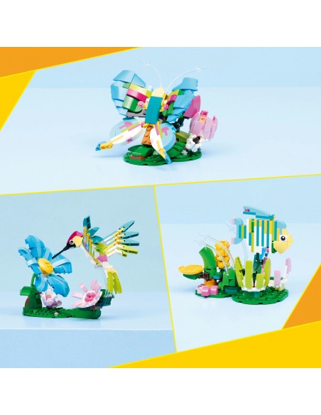 - Ruchome zwierzęta LEGO® — koliber jest przedstawiony w dynamicznym locie i ma ruchomą szyję, skrzydła oraz ogon, a motyl ma ruchome skrzydła