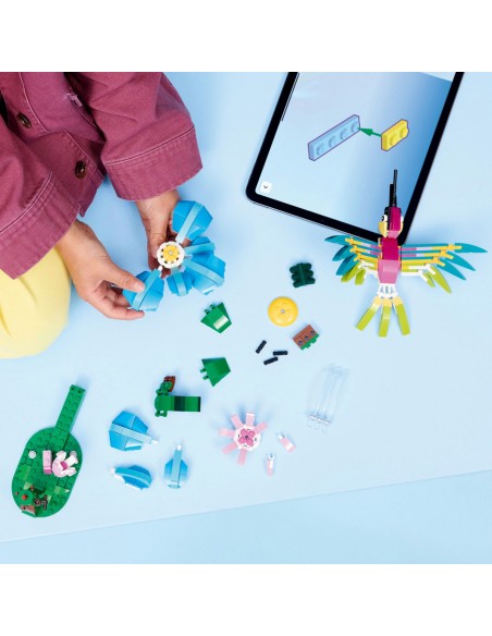 - Nieskończone możliwości zabawy w odgrywanie ról — dzieci mogą bawić się trzema zwierzątkami: kolibrem, motylem lub tropikalną rybą (modeli nie można budować jednocześnie)