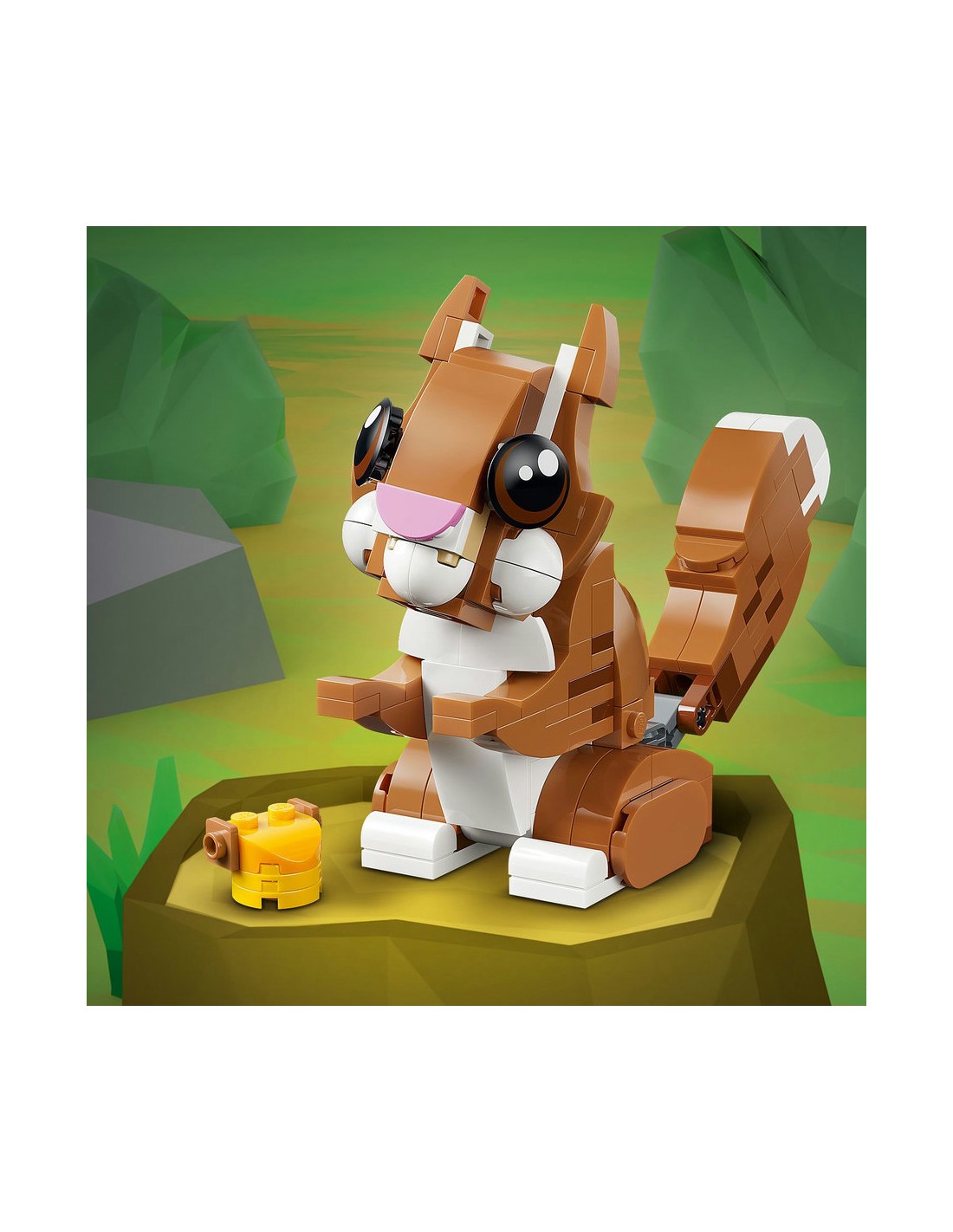 - Ruchome zwierzątka LEGO® — zabawkowy pies ma ruchomą głowę, uszy, łapy, ogon, brwi i pysk, model wiewiórki ma ruchomy ogon i głowę, a zabawkowa kaczka ma ruchomą głowę