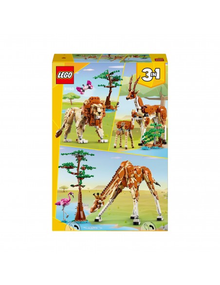 Ten zestaw LEGO oferuje dzieciom mnóstwo możliwości zabawy trzema modelami, które można zbudować z tego samego zestawu klocków. Dzieci mogą stworzyć ruchomą żyrafę z drzewem i flamingiem, a następnie zmienić ją w dwie ruchome gazele, mamę i jej młode, oraz dwa krzaki, albo w lwa z drzewem i motylem.