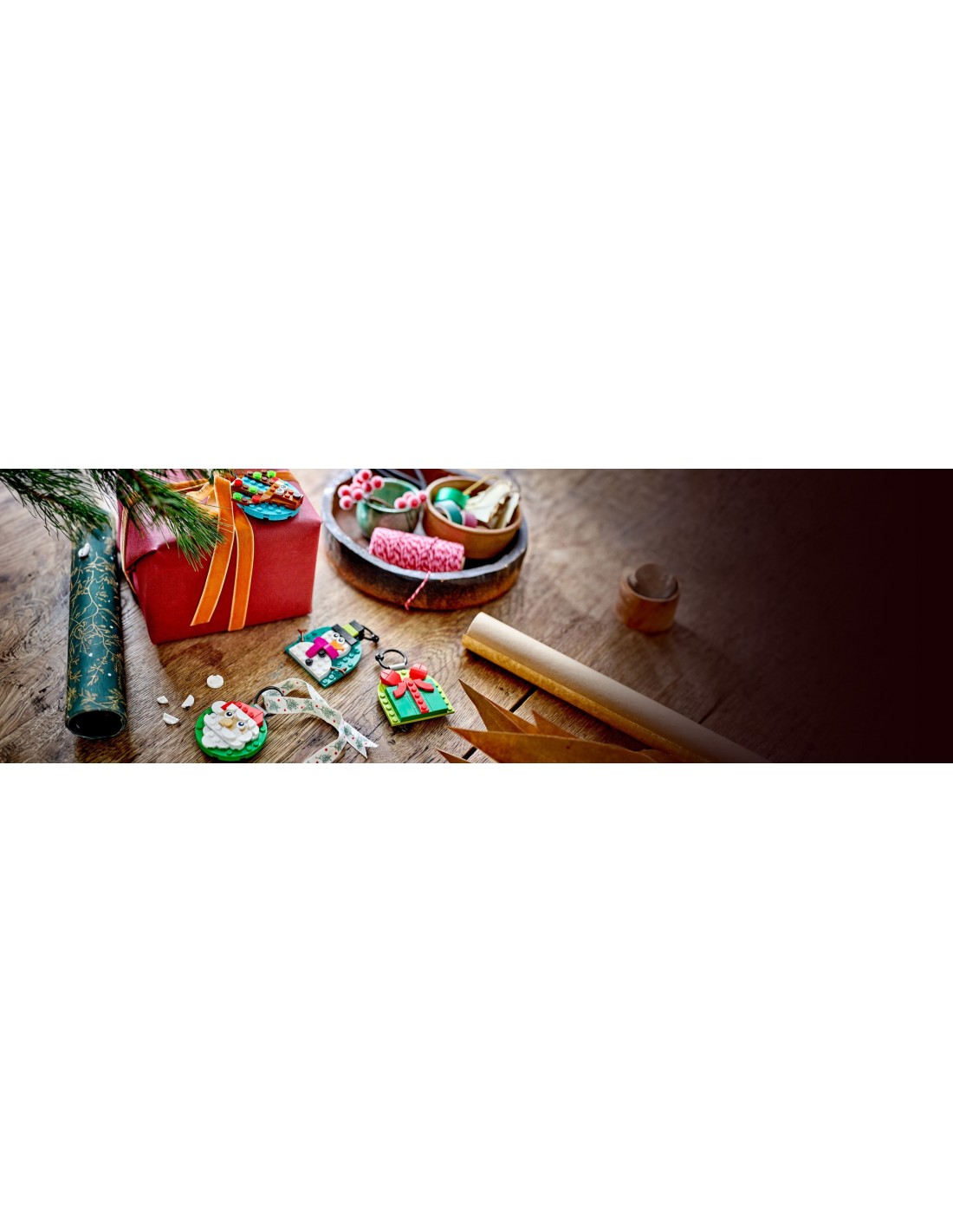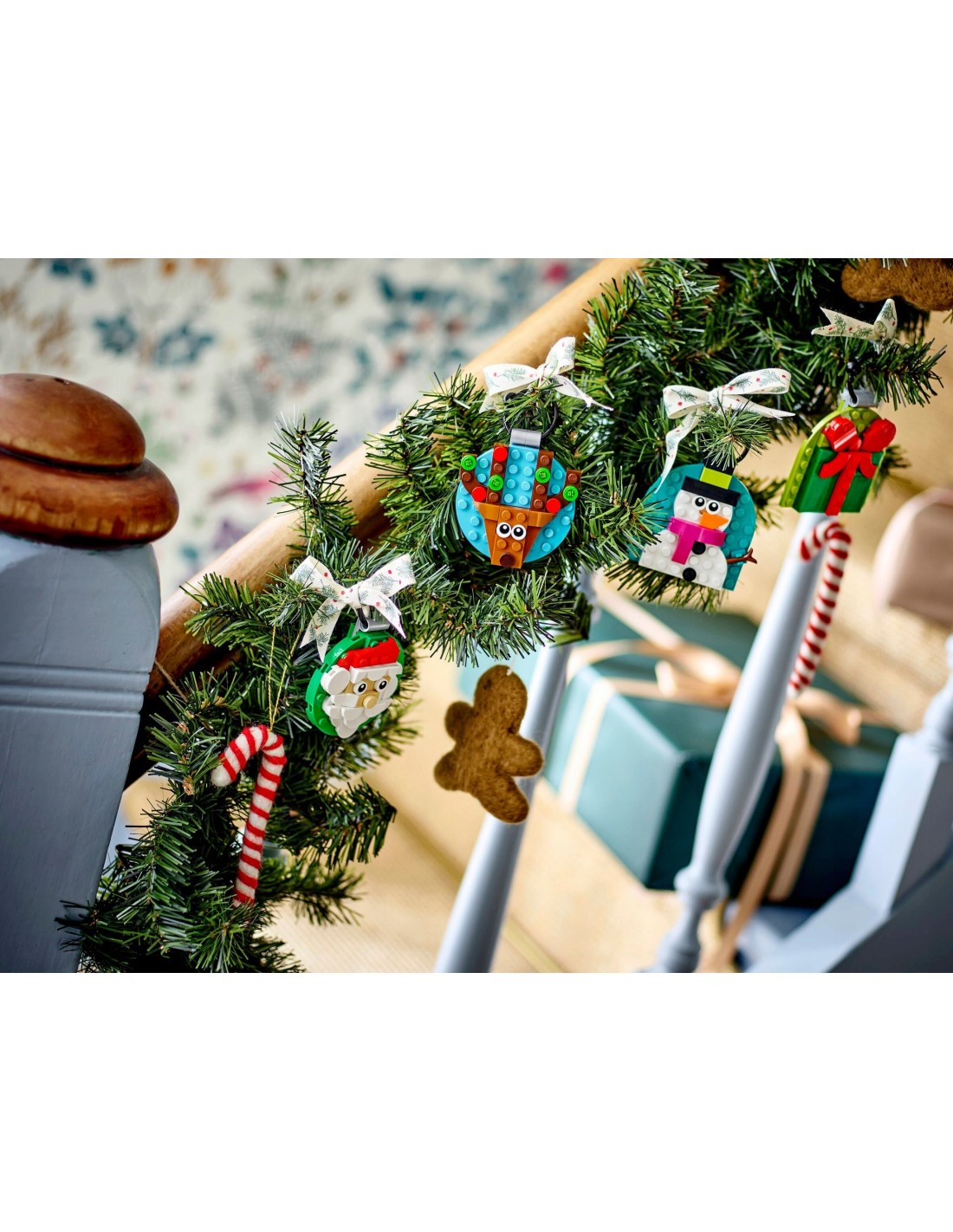 - Ozdoby świąteczne LEGO® — zbuduj cztery kolorowe ozdoby na choinkę: w kształcie prezentu, Świętego Mikołaja, bałwana i renifera