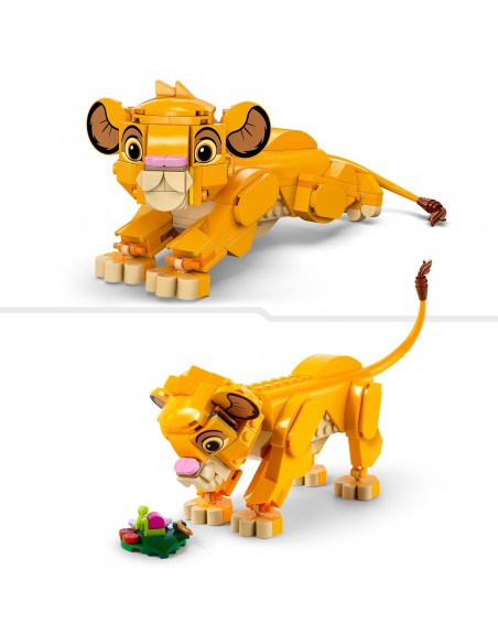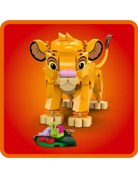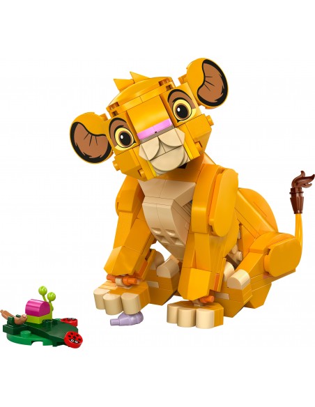 Figurka małego Simby LEGO ǀ Disney z hitowego filmu ma obracającą się głowę oraz ruchome nogi i ogon. Całość urozmaicają liść i cztery owady, które Simba może zjeść.