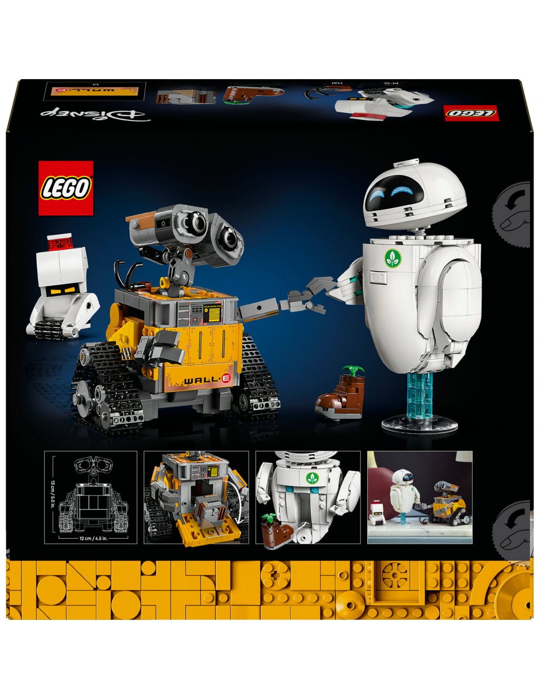 - Postacie LEGO® ǀ Disney — ciekawy zestaw konstrukcyjny zawiera cztery postacie z filmu animowanego WALL-E studia Disney i Pixar : WALL-E, EWĘ, M-O i Hala