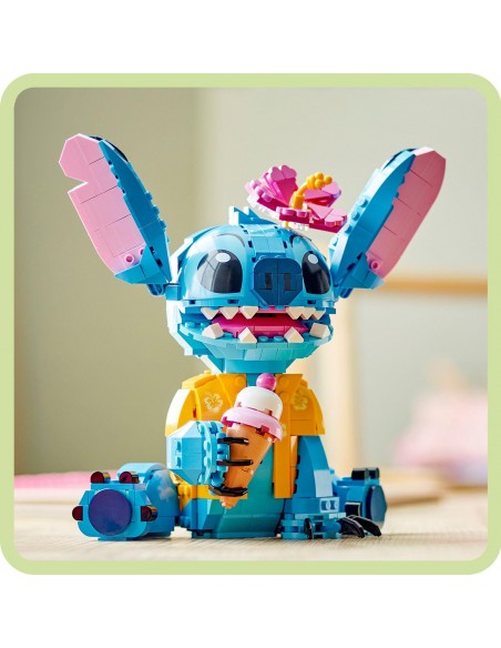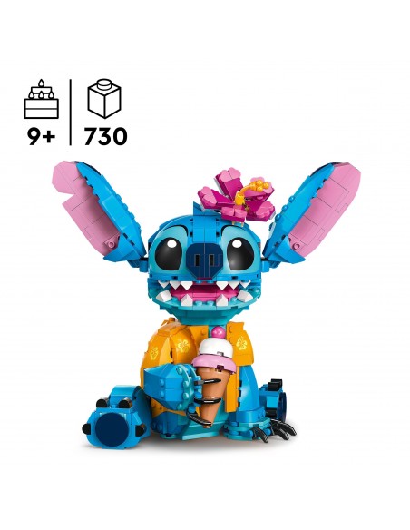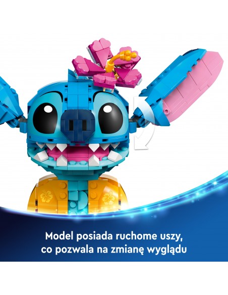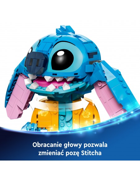 Zestaw do zabawy i ozdoby LEGO® ǀ Disney Stitch (43249) z postacią Stitcha przypadnie do gustu starszym dzieciom oraz fanom Lilo i Stitcha w wieku od dziewięciu lat. Psotny kosmita z kultowego filmu Disneya, ubrany w hawajską koszulę, ma ruchome uszy i obracaną głowę, rożek do lodów oraz kwiat do zbudowania, który można doczepić do postaci.