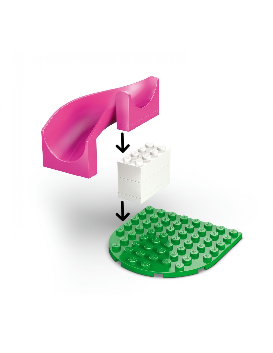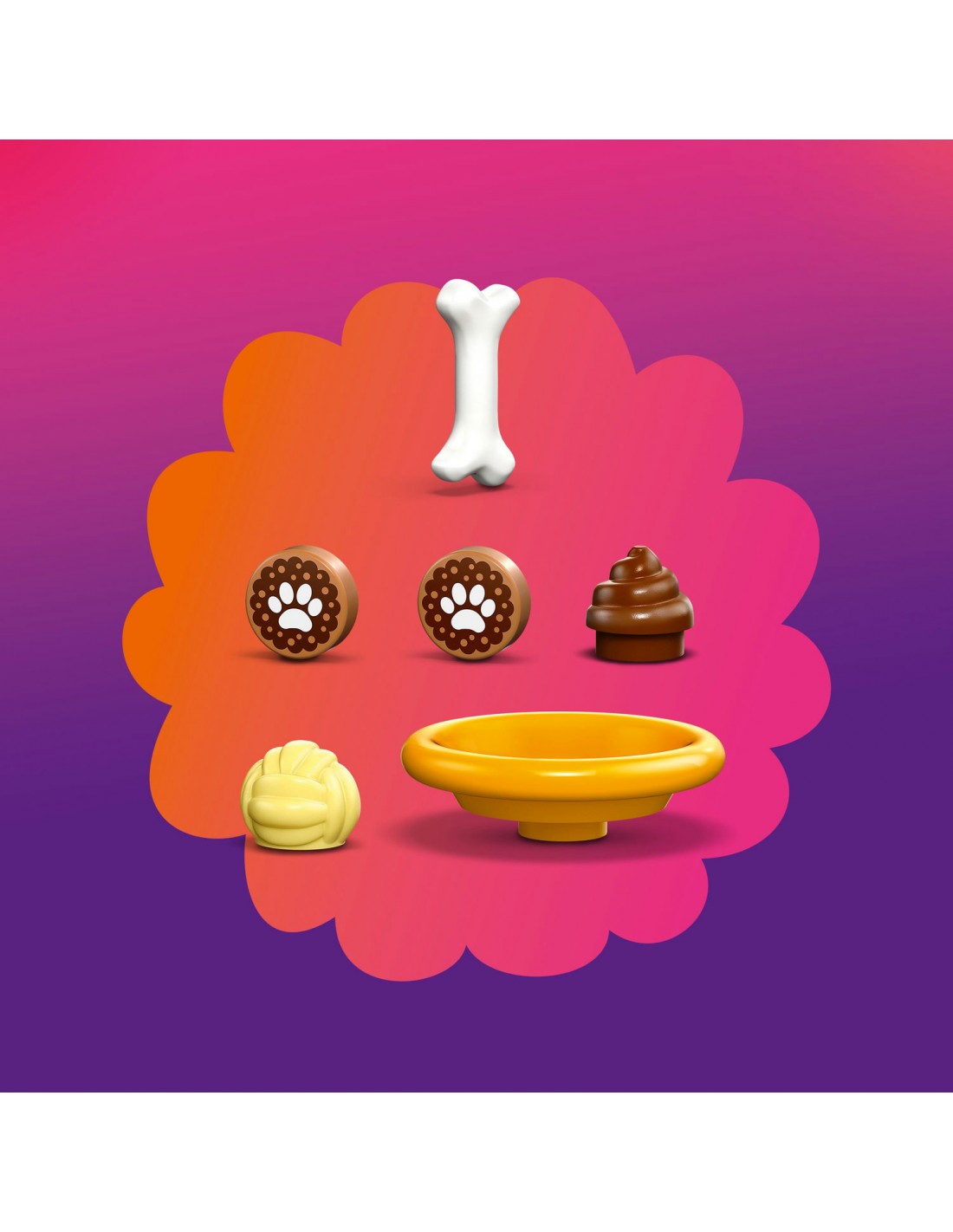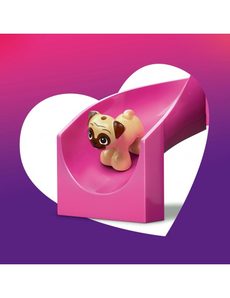 Zabawka konstrukcyjna zachęca dzieci do odgrywania ról i snucia opowieści, w których przyjaciółki pomagają uroczym pieskom zjeżdżać ze zjeżdżalni, wspinać się po drabinie i biegać przez tunel. To świetny prezent dla miłośników psów, który zawiera też zabawne dodatki, takie jak piłka, psie ciasteczka, kość i… psia kupa — gwarantowany uśmiech podczas zabawy!