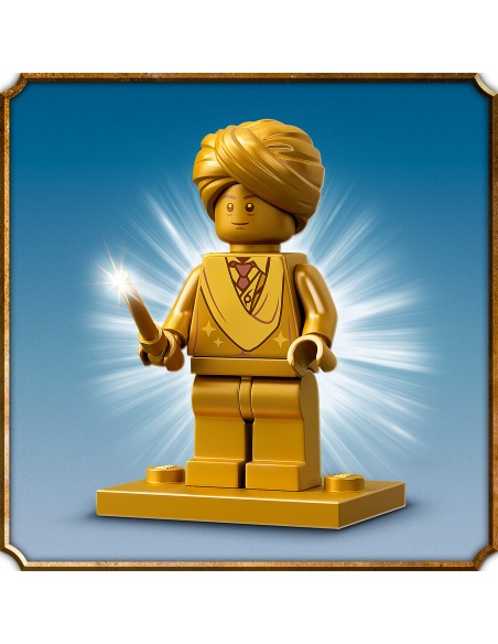 Zawiera wyjątkową złotą minifigurkę profesora Quirrella z okazji dwudziestolecia magicznej serii LEGO® Harry Potter™. W komplecie są też dwie losowe płytki kart czarodziejów do zebrania (łącznie można ich zebrać 16).