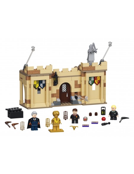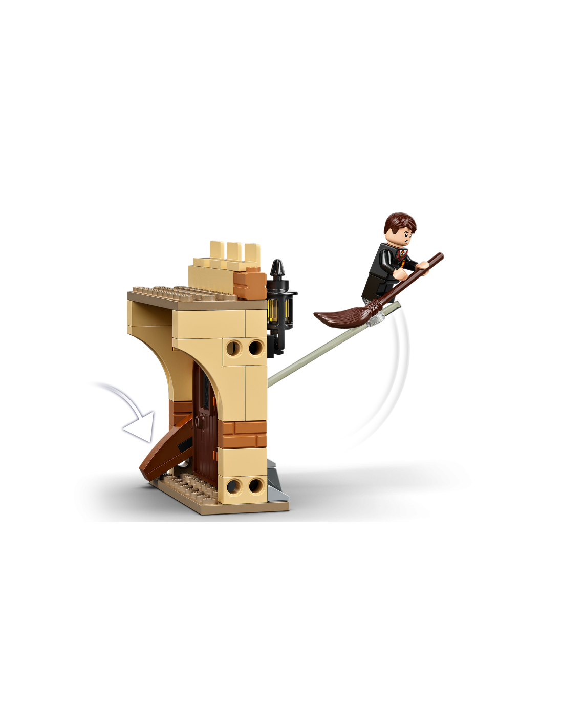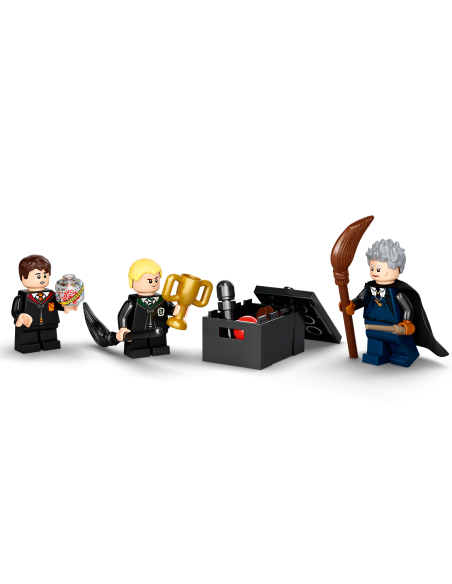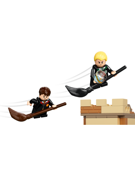 Za pomocą trzech długich, przezroczystych dźwigni młodzi konstruktorzy mogą podnieść minifigurki pani Hooch, Draco Malfoya i Neville’a Longbottoma (z jego cenną przypominajką) do góry na miotłach. Model można podzielić na pięć osobnych modułów, w tym pomieszczenie z pucharem quidditcha oraz magazyn ze sprzętem treningowym dla czarownic i czarodziejów. Zestaw zawiera również inne niespodzianki: wyjątkową, złotą rocznicową minifigurkę profesora Quirrella i dwie losowe płytki kart czarodziejów. Ponadto można go rozbudować, by stworzyć kompletny model zamku Hogwart.