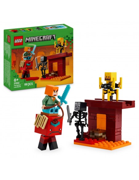 Ten szybki do zbudowania model dla graczy w Minecrafta® jest osadzony w szkarłatnym lesie i zawiera cztery minifigurki z gry oraz lawową lawinę! Dzieci walczą z mobami i uciekają przed lawą Bitwa na moście Netheru (21266) to niewielki zestaw LEGO® Minecraft®, dzięki któremu można zbudować znany z gry świat. Zawiera on znane figurki z gry, fajne funkcje i gwarantuje niekończące się emocje, dzięki czemu idealnie sprawdzi się jako upominek dla sześciolatków i starszych dzieci.