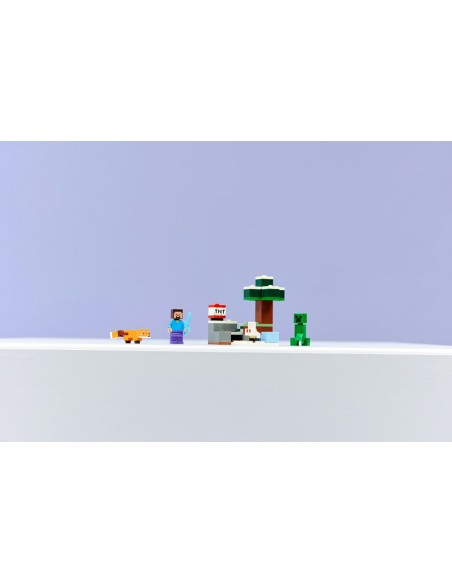 W przygodzie towarzyszyć im będą minifigurka Steve'a oraz figurki creepera™, lisa i małego króliczka LEGO. Dzieci dołączają do jednego z bohaterów gry, Steve'a, który wydobywa diamenty w biomie tajgi gry Minecraft, z charakterystycznym świerkiem, śniegiem i trawą tajgi. TNT i funkcja eksplozji rozbijają skały, odsłaniając diamenty, które można przechowywać w skrzyni. Jest też wrogi creeper, którego trzeba pokonać za pomocą diamentowego miecza Steve'a.