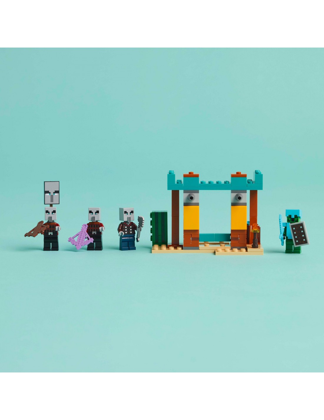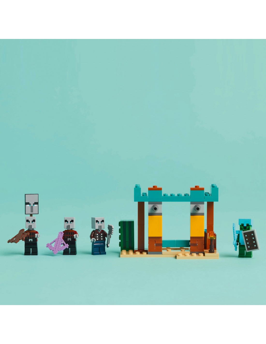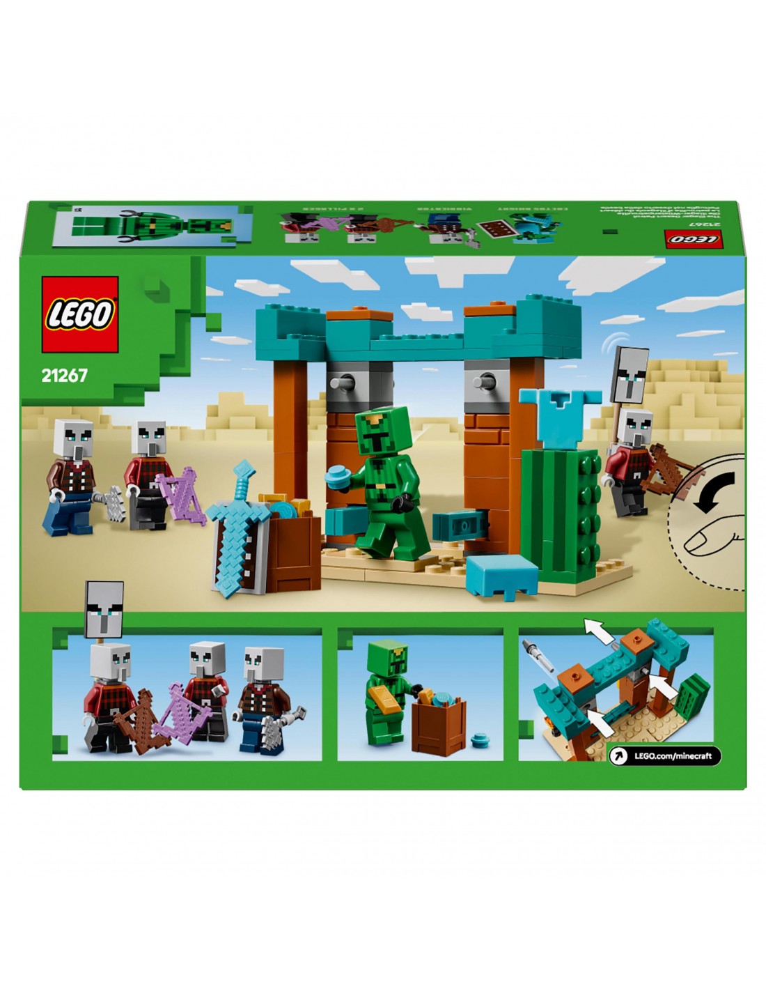 Na pustynnym posterunku z gry Minecraft dzieci mogą wcielić się w rolę kaktusowego rycerza z diamentową zbroją, tarczą i mieczem. Gdy przybywa trzech złosadników, by ukraść skarb, dzieci muszą bronić posterunku. Zestaw zawiera pociski, które dzieci mogą wystrzelić palcami, różne rodzaje broni i beczkę ze skarbem. Dodatkową cyfrową zabawę zapewnia aplikacja LEGO Builder, która pozwala dzieciom powiększać i obracać modele w 3D na urządzeniu.