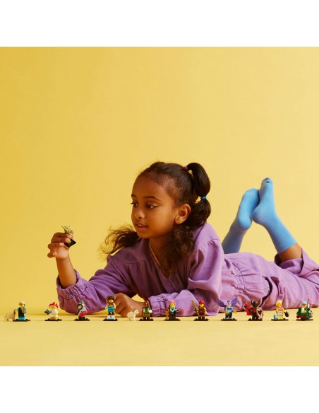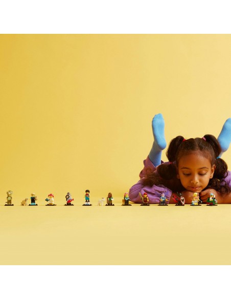 Każda kolekcjonerska minifigurka zawiera realistyczne akcesoria. Minifigurki to: miłośnik triceratopsów w przebraniu, sprinter, detektyw z filmu kryminalnego, mały miłośnik pociągów, pasterz, wampirzy rycerz, psia fryzjerka, instruktorka fitness, zawodniczka e-sportowa, leśny duszek, groźny barbarzyńca i harpia. Łącznie to 12 minifigurek do zebrania.