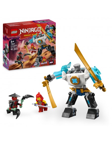 Zestaw LEGO® NINJAGO® Mech w zbroi bojowej Zane’a umożliwia sześciolatkom i starszym dzieciom odtwarzanie ekscytujących akcji z trzeciego sezonu serialu telewizyjnego NINJAGO®: Powstanie Smoków. Zawiera on mecha NINJAGO z ruchomymi rękami,nogami i dłońmi, obrotowym tułowiem, otwieranym korpusem, w którym można umieścić minifigurkę, oraz dwoma dużymi mieczami.