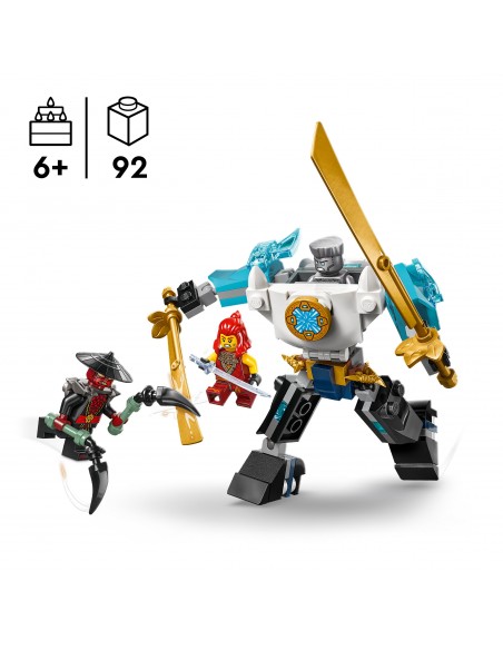 Wymiary — ten 92-elementowy zestaw konstrukcyjny LEGO® NINJAGO® dla dzieci zawiera Mecha w zbroi bojowej Zane’a o wysokości 10 cm