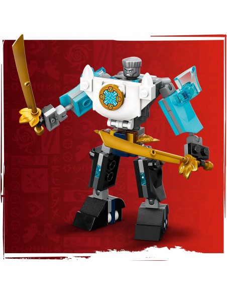 Ruchomy mech — Mech w zbroi bojowej Zane’a ma ruchome ramiona, nogi i dłonie, obrotowy tułów, otwierany korpus, w którym można umieścić minifigurkę, oraz dwa duże miecze