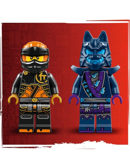 Zestaw zawiera dwie minifigurki — Cole’a z mieczem kataną i wojownika wilczej maski z mieczem — dzięki czemu dzieci mogą odgrywać ciekawe przygody ninja.