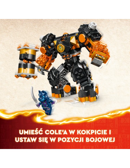 Ten fajny mech ma ruchome ręce i nogi, które można przechylać i obracać, tworząc epickie bojowe pozy, ciężką zbroję Cole’a, duży młot i kokpit, w którym można umieścić minifigurkę.