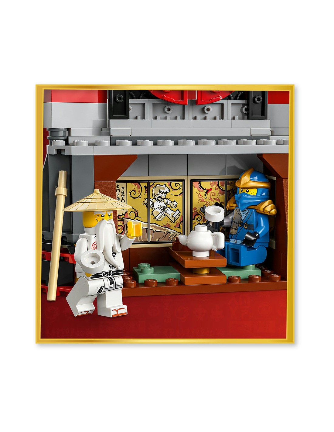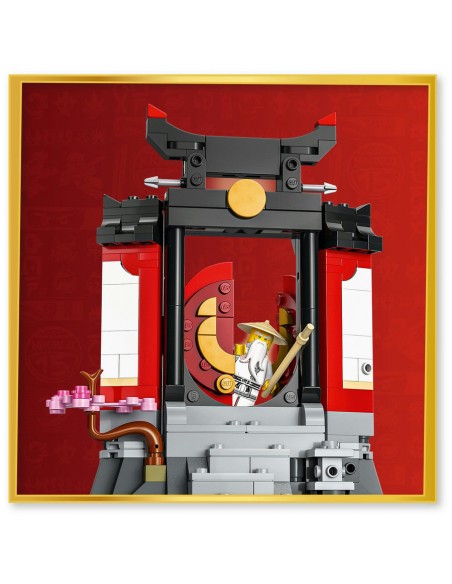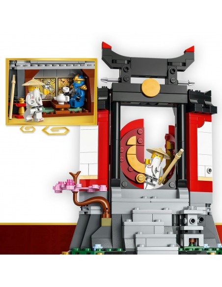 - Klasztor NINJAGO® — ta atrakcyjna zabawka z ninja może pomieścić osiem minifigurek i zawiera schody, otwierane drzwi, latarnię, kwitnącą wiśnię oraz herbaciarnię z tyłu