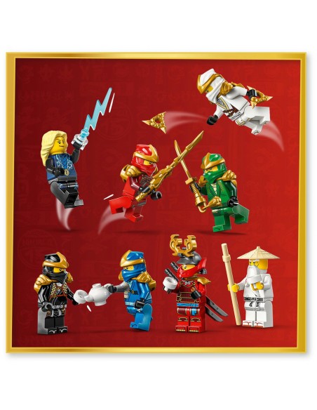Minifigurki to postacie z pierwszego sezonu serialu „LEGO NINJAGO”: Kai, Zane, Cole, Jay, Lloyd, Wu i Samurai X, wszyscy z bronią, a ponadto po raz pierwszy kolekcjonerska minifigurka Mistrzyni Błyskawic na osobnej podstawce, którą można przymocować do klasztoru. Seria zestawów i zabawek LEGO NINJAGO dla dzieci obejmuje mechy, smoki i świątynie, dzięki którym fani mogą odgrywać scenki z udziałem ninja.