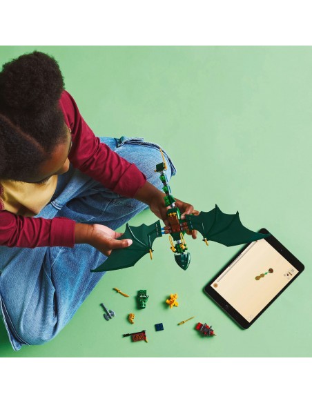 Dzięki zestawowi Zielony leśny smok Lloyda (71829) sześciolatki i starsze dzieci wzbiją się w przestworza, aby odtworzyć sceny z trzeciego sezonu serialu telewizyjnego NINJAGO® Powstanie Smoków. Zestaw zawiera imponującego smoka z ruchomym ogonem, szyją, nogami, dużymi skrzydłami i łapami, a także siodło dla minifigurki, by usadzić ją na jego grzbiecie.