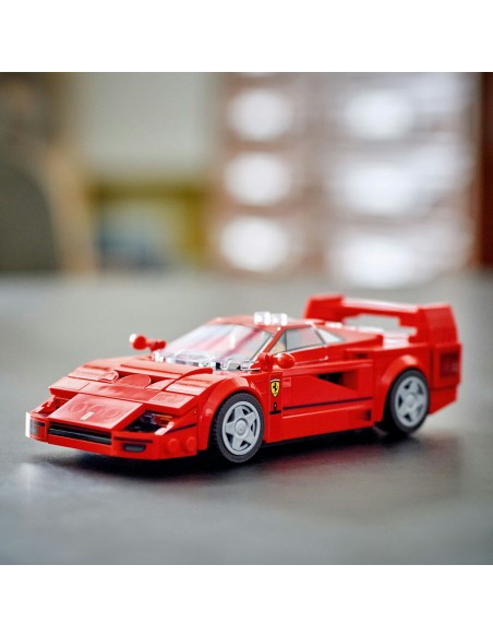 Ferrari posiada charakterystyczny dla F40 tylny spojler, maskę, rury wydechowe, felgi, elementy wlotu powietrza oraz wnętrze z deską rozdzielczą, hamulcem ręcznym, dźwignią zmiany biegów, czerwonymi fotelami i kierownicą. W zestawie jest także minifigurka kierowcy Ferrari, którą dzieci mogą posadzić za kierownicą.