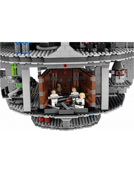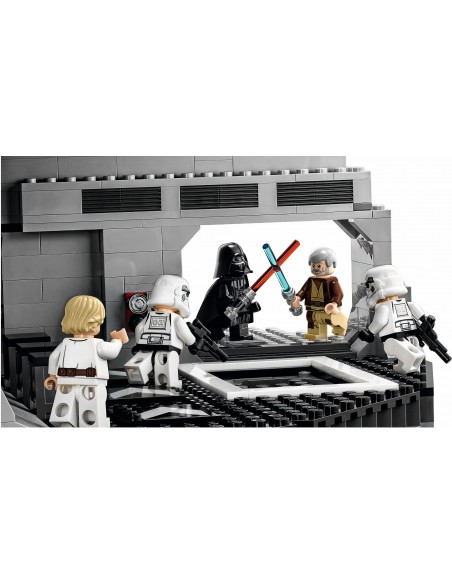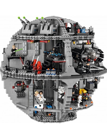 Ten niesamowity model z serii Star Wars ma tak wiele pomi eszczeń, hangarów i detali, że nie wiadomo, od czego zacząć. Uruchom ogromny superlaser w sterowni, planuj misje w sali konferencyjnej i wyślij do walki myśliwiec TIE Advanced lorda Vadera z hangaru. Naprawiaj droidy w warsztacie, pilnuj więźniów w celach i walcz z pojazdami gwiezdnymi Rebelii za pomocą sprężynowego turbolasera, wież turbolaserowych i potężnego promienia przyciągającego. Możesz nawet odwiedzić imperatora Palpatine’a w sali tronowej, przemieszczać ładunki w magazynie i zająć się śmieciami w zgniatarce. W Gwieździe Śmierci nie może oczywiście zabraknąć Obi-Wana Kenobiego, Luke’a Skywalkera i Hana Solo, usiłujących pokrzyżować złowrogie plany Imperium! Czy zdołają pokonać Vadera i innych stronników Imperium? Los Gwiazdy Śmierci jest w Twoich rękach…