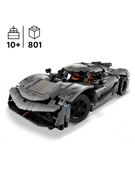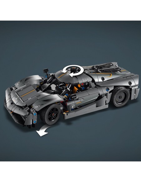 Zbuduj własny model jednego z najszybszych samochodów dopuszczonych do ruchu drogowego na świecie! Ta wersja LEGO® Technic szarego hipersamochodu Koenigsegg Jesko Absolut jest pełna realistycznych detali. Zbuduj silnik V8 z ruchomymi tłokami i mechanizmem różnicowym. Następnie przetestuj układ kierowniczy i dwuścienne drzwi synchro-helix, które otwierają się pod kątem 90 stopni.