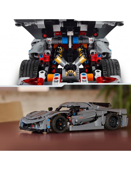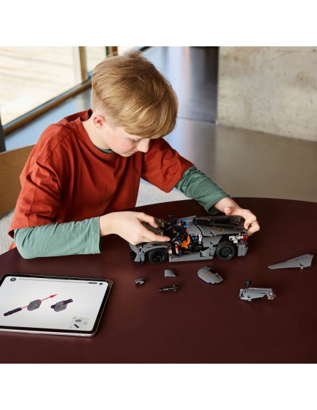 Podczas budowania ruchomego silnika V8 i mechanizmu różnicowego młodzi konstruktorzy mogą zgłębiać tajniki inżynierii. Następnie mogą sprawdzić działanie układu kierowniczego za pomocą odczepianego pokrętła mieszczącego się z przodu samochodu. Fajną funkcją tego zabawkowego pojazdu jest także dwuścienny system drzwi synchro-helix, które obracają się o 90 stopni i odchylają się na zewnątrz, zupełnie jak w prawdziwym hipersamochodzie.