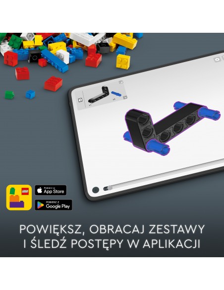Dzieci mogą cieszyć się intuicyjnym budowaniem dzięki aplikacji LEGO Builder. Mogą w niej przybliżać i obracać model w 3D, zapisywać zestawy i śledzić postępy.