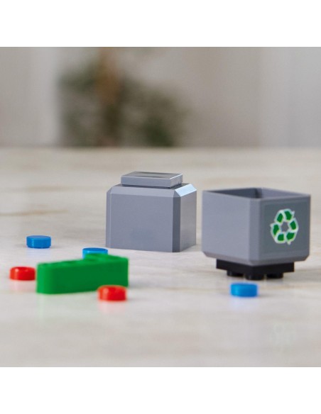 Po zbudowaniu modelu dzieci mogą cieszyć się kreatywną zabawą i odkrywać możliwości śmieciarki. Drzwi się otwierają, a dzieci mogą użyć dźwigni na gór ze kabiny, aby ustawić pojazd w odpowiednim położeniu do odbioru śmieci.