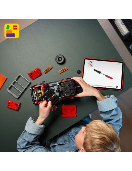 - Kultowe detale — ten model samochodu LEGO® ma niesamowity czerwony kolor z czarnymi detalami, dlatego wspaniale prezentuje się na półce w przerwie między zabawami