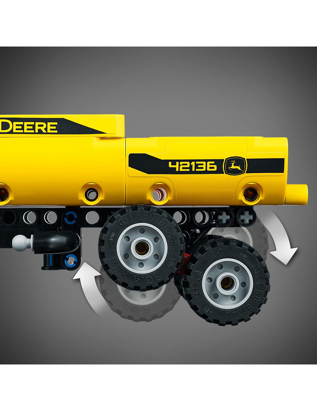LEGO® Technic Traktor John Deere 9620R 4WD z przegubowym układem kierowniczym oraz przyczepą z wywrotką to fajny projekt konstrukcyjny dla dzieci, które lubią traktory.