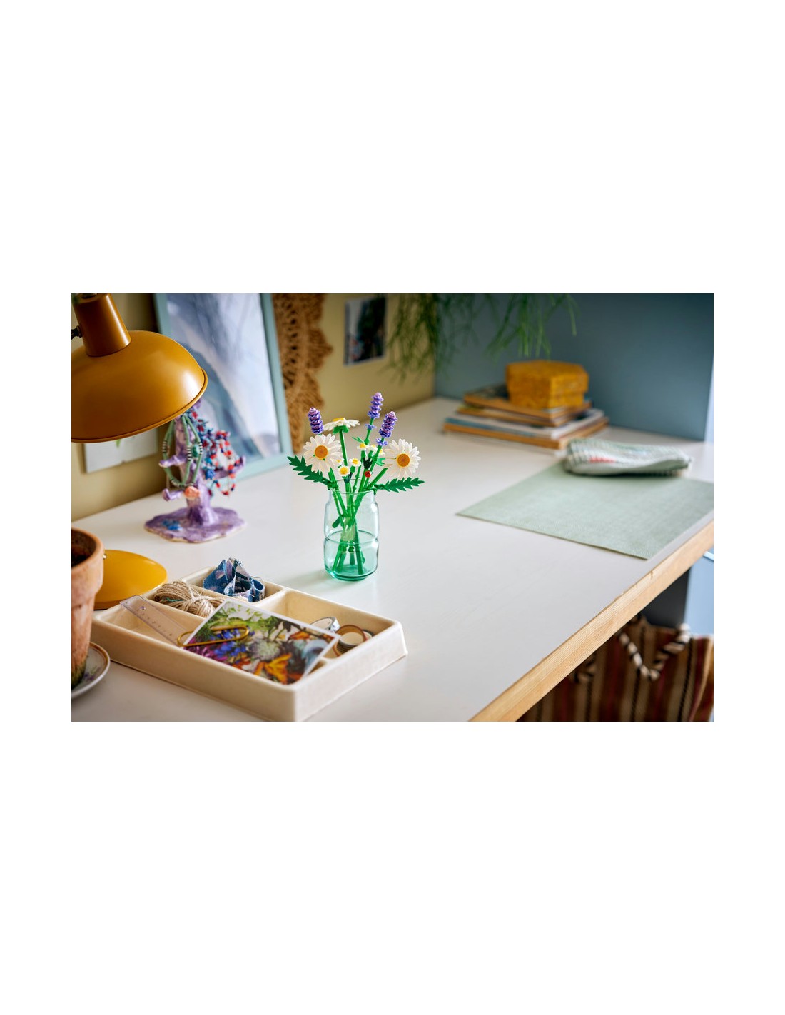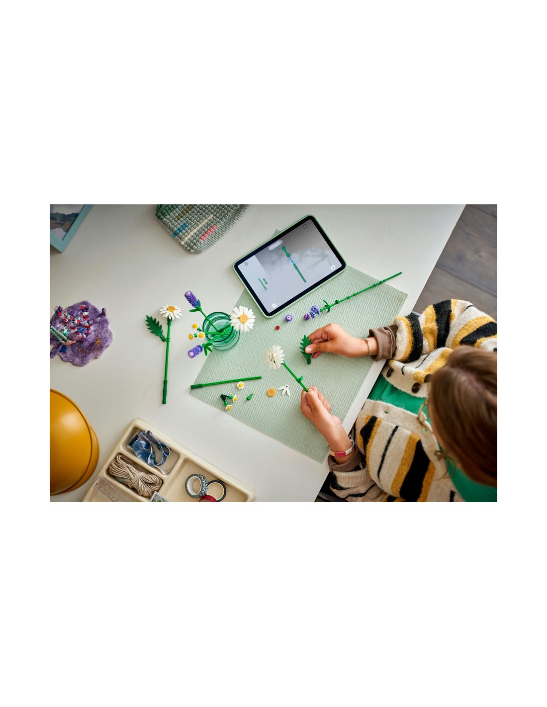 - Bukiet kwiatów LEGO® — początkujący floryści będą mieli frajdę z budowania trzech dużych stokrotek, dwóch łodyżek małych stokrotek, trzech gałązek lawendy i intensywnie zielonych łodyg