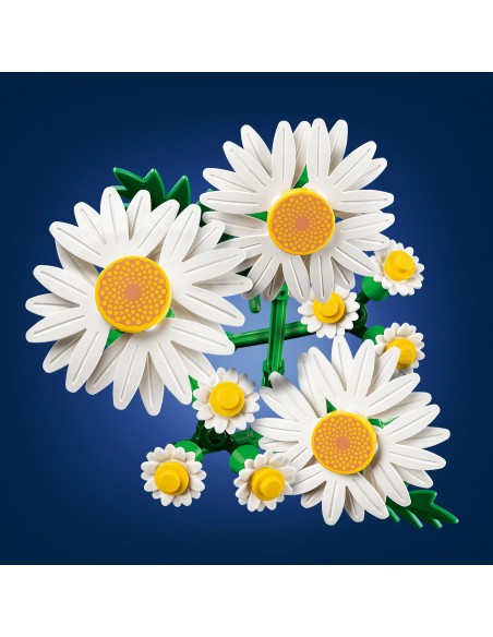 Rozwijaj wyobraźnię najmłodszych dzięki zestawowi LEGO® Botanicals Stokrotki dla dzieci w wieku od dziewięciu lat. Dziewczynki i chłopcy będą się świetnie bawić, tworząc ten uroczy bukiet, który zawiera trzy duże stokrotki, dwie łodygi małych stokrotek, trzy gałązki lawendy i intensywnie zielone łodygi.