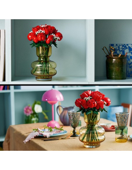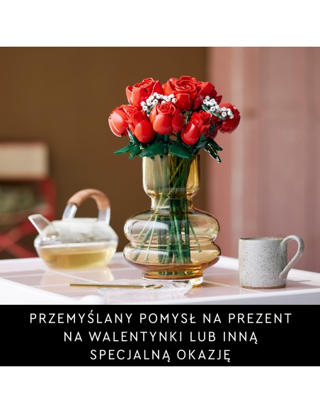 Zrelaksuj się podczas budowania zestawu, a jednocześnie ozdoby do domu — LEGO® Icons Bukiet róż (10328).