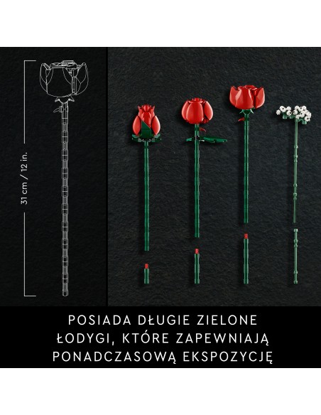 Wymiary — najwyższa róża w tym 822-elementowym zestawie ma 31 cm długości.