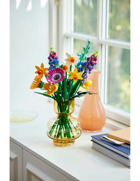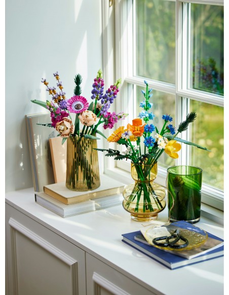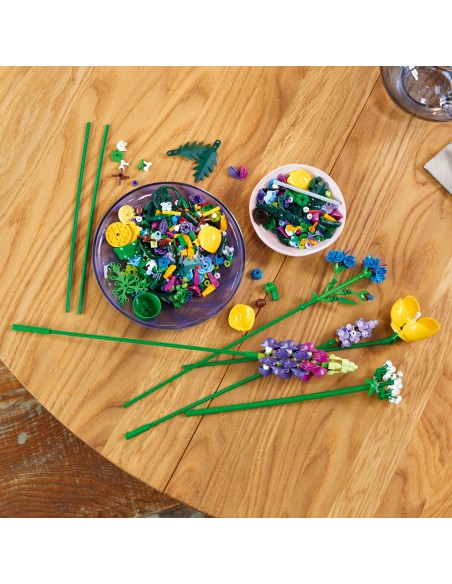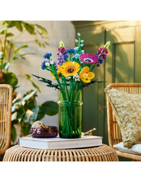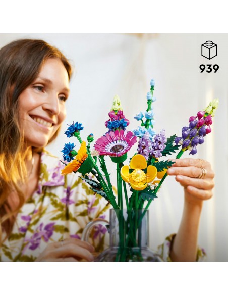 Złożony całkowicie ze szczegółowych klocków LEGO bukiet z polnych kwiatów obejmuje osiem gatunków kwiatów na regulowanych łodygach. Początkujący floryści i wielbiciele kwiatów mogą spędzić wiele godzin na budowaniu i odkrywaniu kwiatów inspirowanych chabrami, lawendą, makami walijskimi, trybulą leśną, paprocią skórzastą, gerberami, ostróżkami i łubinem.