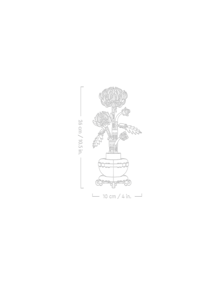 Wymiary — chryzantema z doniczką i cokołem w tym 278-elementowym zestawie ma 26 cm wysokości, 10 cm szerokości i 9 cm głębokości