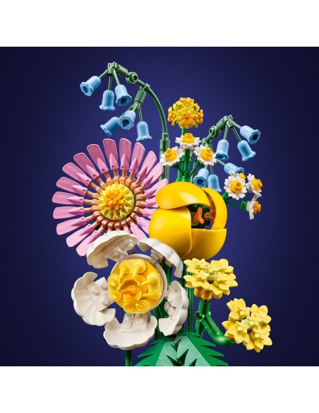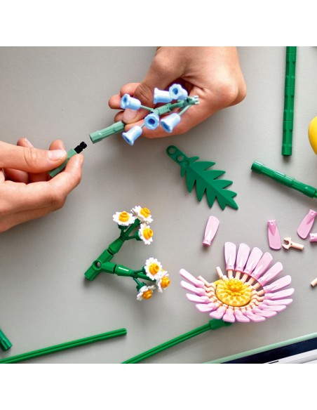 Początkujący floryści w każdym wieku będą się świetnie bawić, budując bukiet, który jest wypełniony wiosennymi kwiatami LEGO, w tym kraspediami, dzwonkami, paprociami, krwawnikiem, różową gerberą, piwonią i tulipanem. Dzięki regulowanym łodygom mogą stworzyć własną kompozycję kwiatową. Po zakończeniu budowania i aranżacji bukietu dzieci i dorośli mogą z dumą ustawić go w swoim pokoju lub postawić jako dekorację na biurku.