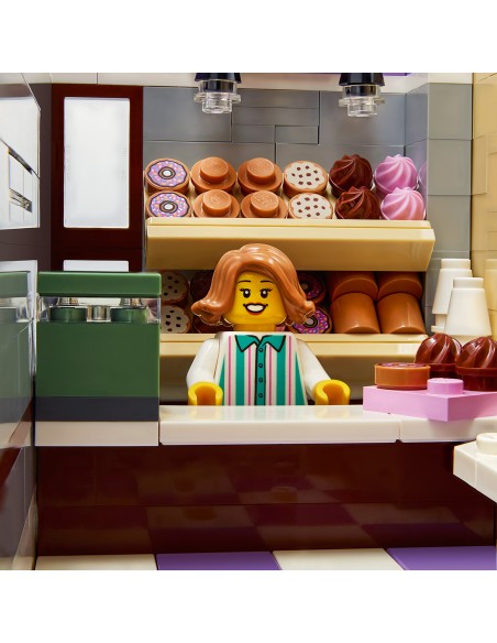 Wejdź do pysznego świata przekrętów, pojmań i pączków dzięki zestawowi 10278 LEGO® Posterunek policji. Składanie trzykondygnacyjnego modelu gwarantuje wiele godzin wciągającej zabawy. Zobacz, jak zbudowane z klocków schody wznoszą się od parteru aż na najwyższe piętro. Jeśli chcesz, możesz też zajrzeć do środka modelu, z łatwością odczepiając każdą kondygnację. W przerwie od policyjnych obowiązków wpadnij po coś słodkiego do sklepu z pączkami lub weź coś do czytania z kiosku z gazetami.